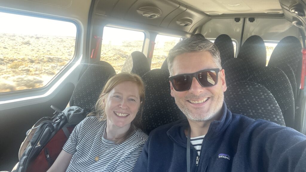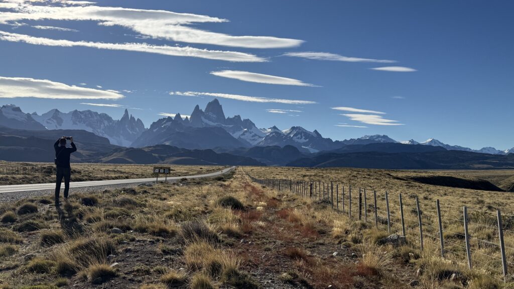 Mit einem Shared-Transport, der dann doch ein Privat-Transport ist, werden wir von El El Calafate nach El Chaltén gefahren. Die Fahrt dauert 2 1/2 Stunden – vor allem, weil wir unzählige Male anhalten, um ein Foto zu machen.