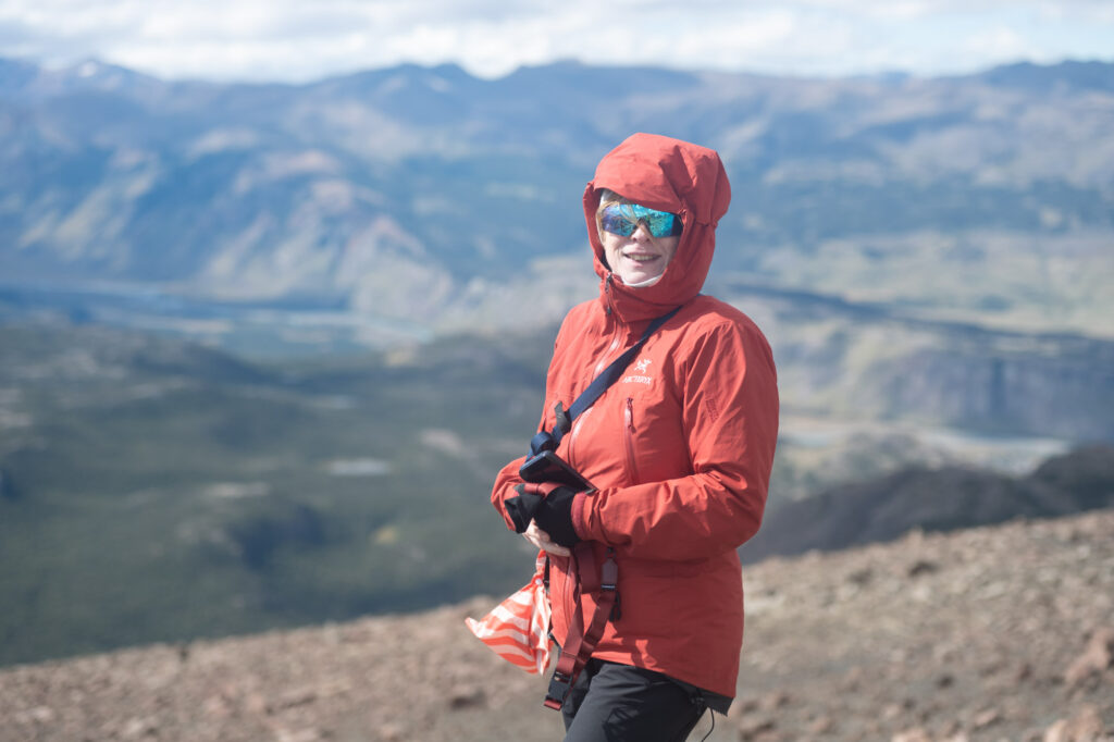 Nach gut 1100 m.ü.M. hört auch schon die Baumgrenze auf. Also wesentlich niedriger als in der Schweiz. Hier bläst uns ein starker und eisiger Wind entgegen. Ich habe kurz vor unseren Ferien meine geliebte Arcteryx Jacke zum Transa gebracht zur Beurteilung, ob sich eine weitere Reparatur lohnt. Tat es nicht, aber nach 15 Jahren kann man dann auch wieder mal eine neu Jacke kaufen. Und es ist einfach herrlich warm in ihr.