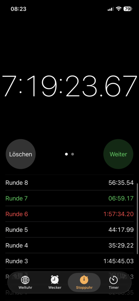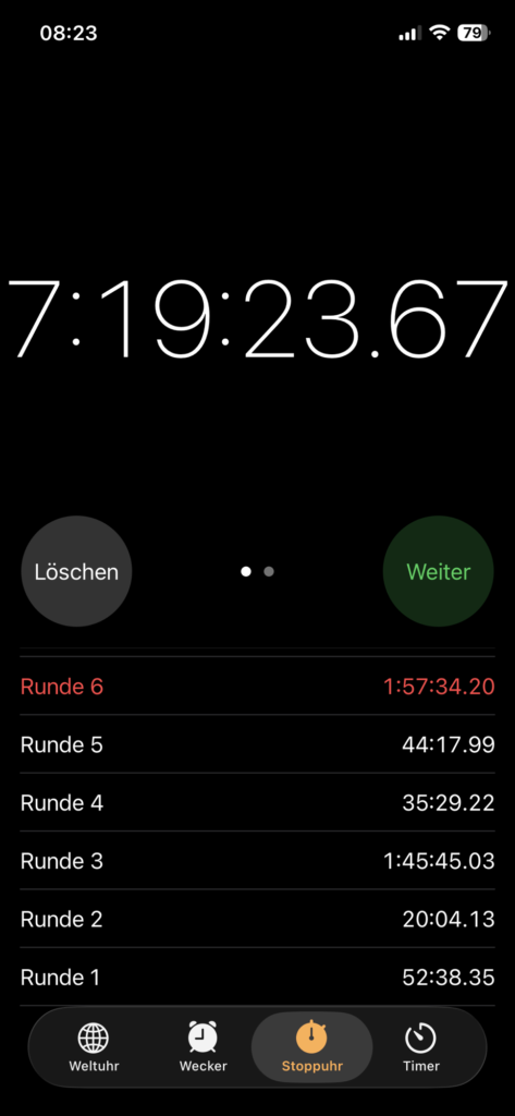 So steigen wir also in Runde 4, in 35 Minuten nochmals ca. 280 Höhenmeter zum Aussichtspunkt hoch. Nina sicheren Tritts voraus, ganz zum Ende hin nochmals ein wenig klettern. Ja man muss sich den Gipfel wirklich erkrakseln.