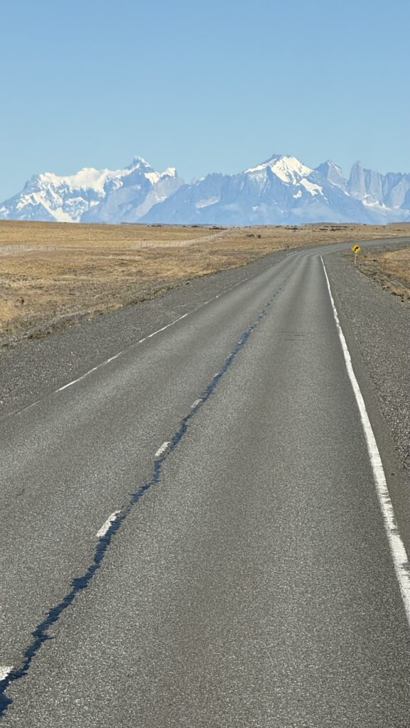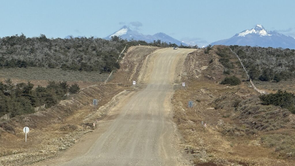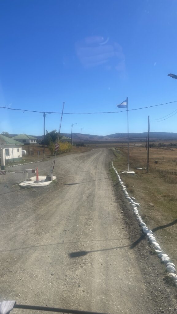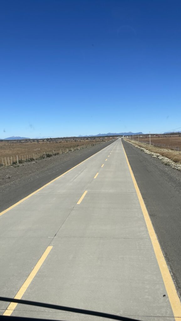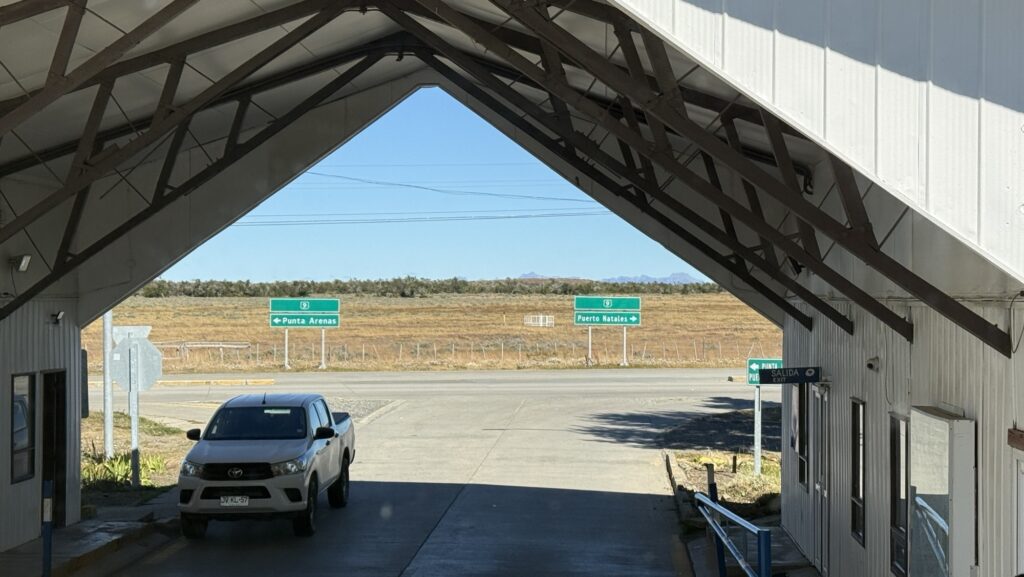 Zumindest bei der Sitzplatzreservierung lohnt sich aber unser frühzeitiges Planen – wir haben die vorderste Sitzreihe oben und sehen nun fast 6 Stunden lang zu, wie sich die meist schnurgerade Strasse an Guanacos und Nandus, Kühen und Schafen vorbei zieht. Kurz vor Chile endet die Strasse auf einem Schotterweg und der doppelstöckige Busfährt fährt 10km in Schritttempo bis zum argentinischen Grenzposten. Kaum haben wir die Landesgrenze zu Chile überquert, empfängt uns eine glatt asphaltierte Strasse und leitet uns die letzten Kilometer nach Puerto Natales.