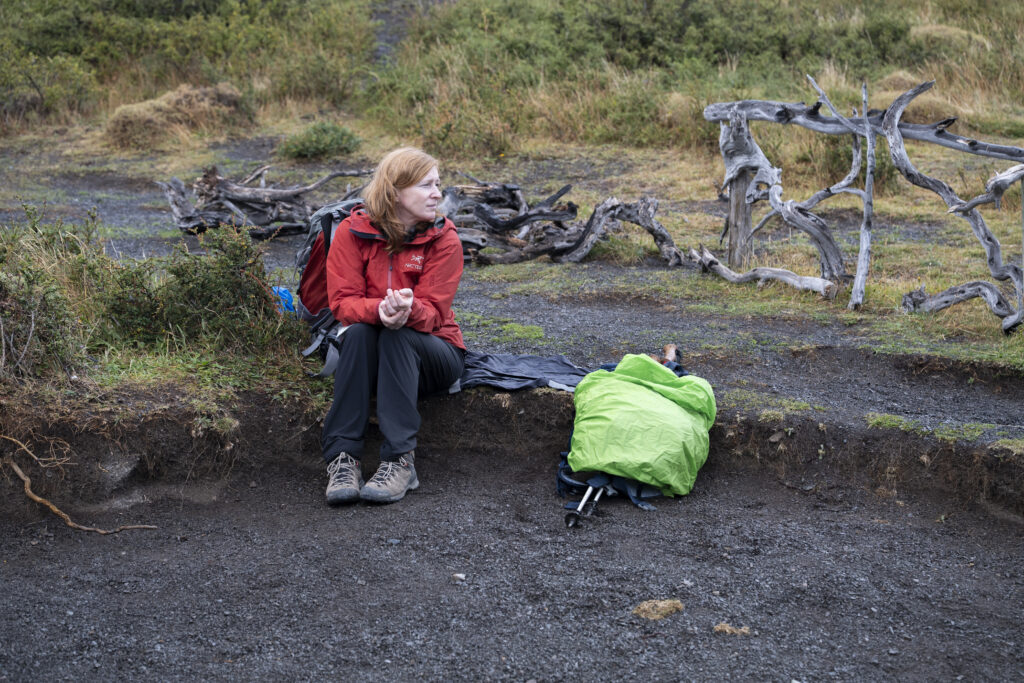 Tag 2 startet nass und mit tief hängender Wolkendecke. Wo sich gestern noch das Bergmassiv erhoben hat, hängen dicke Wolken. Wir machen uns trotzdem auf unsere Wanderung zum Wasserfall und Aussichtspunkt.