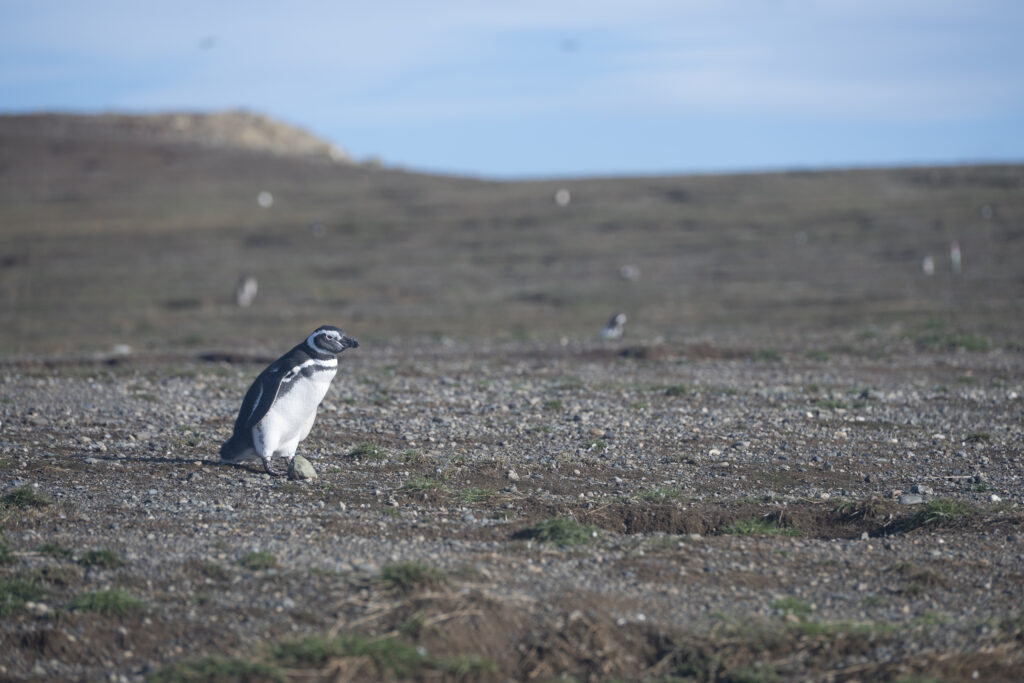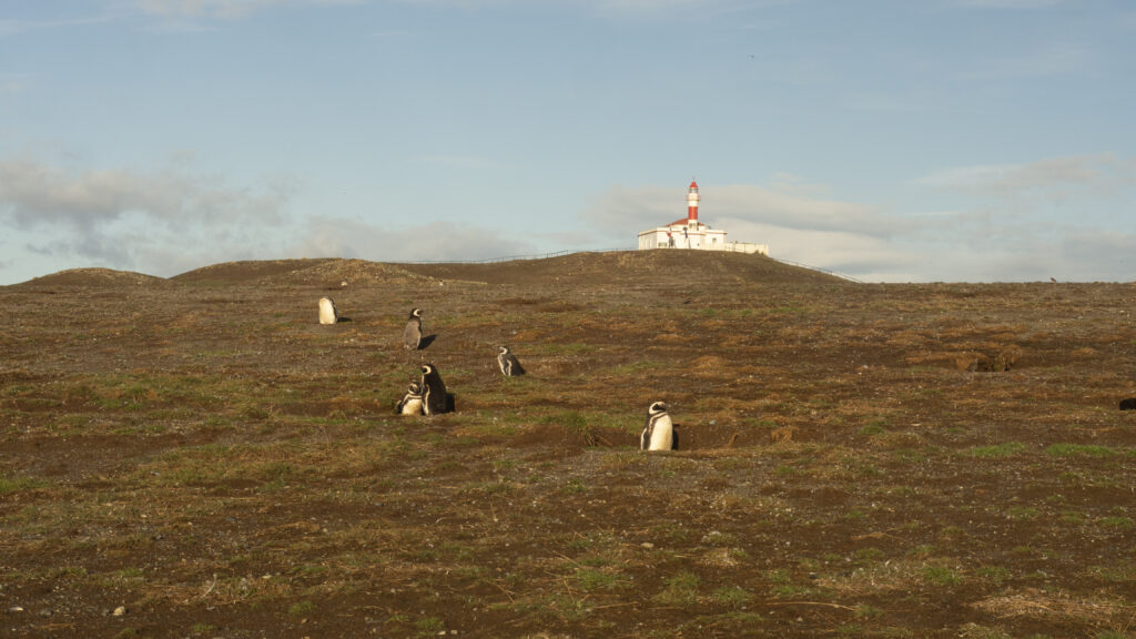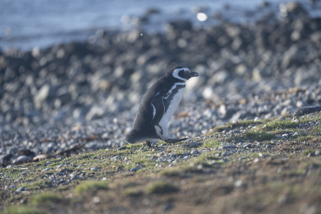 Danach geht es weiter zur Inser der Magellanic Penguins. Wir laufen einmal zum Leuchtturm hoch und auf der anderen Seite wieder runter und fotografieren die ca. 40cm grossen Pinguine.